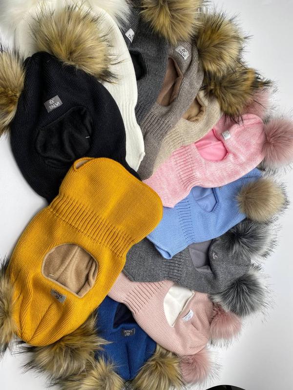 Тёплый, зимний шлем с очень красивыми бубонами Балабоны из высококачественного искусственного меха. Состав: верх - 50%-шерсть, 50%-ПАН. Подклад - термофлис ✅ 46-48(1-2 годика) только молочный ✅ 50-52(2-4 годика) все цвета