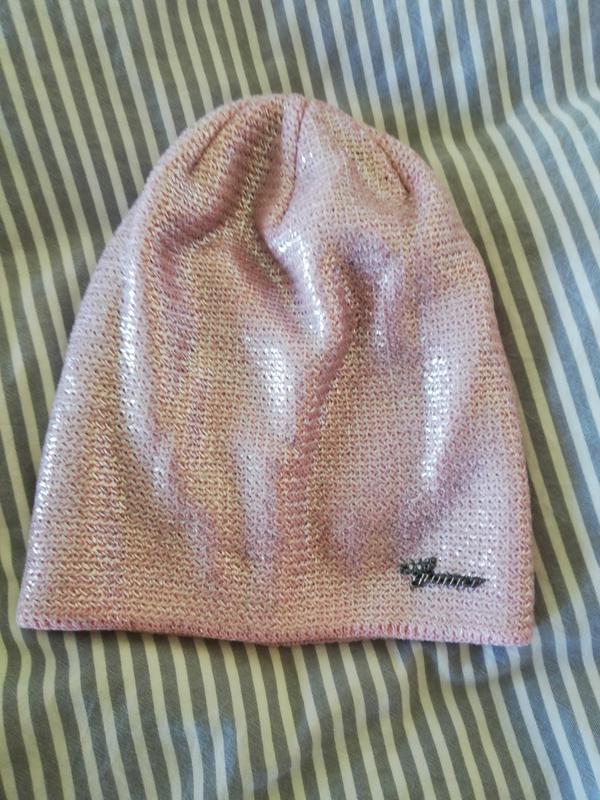 Нова подвійна шапочка. Рожевого кольору зі сріблястим напиленням. Тепленька