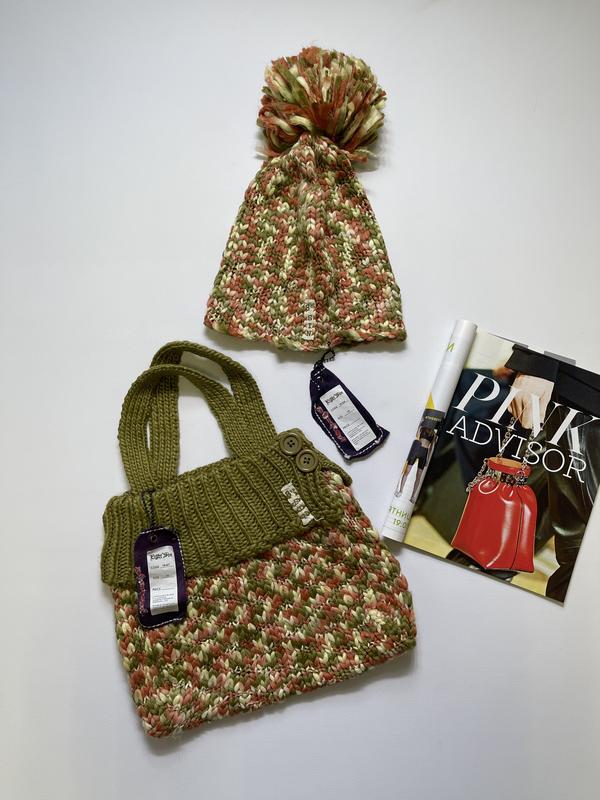 Новенький в’язаний набір Шапочка+сумочка Розмір шапки: Обьєм шапки 23 см Сумка: Висота 27 см, довжина 29 см