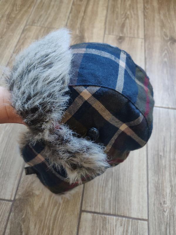 шапка вушанка в клітинку, хутро штучне,є кнопка на пряжці, стан без нюансів, об'єм 65-66 см, тепла