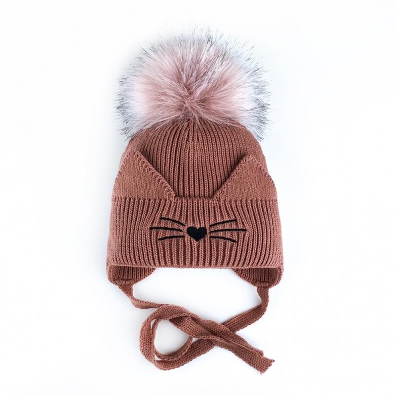 В'язана зимова шапка Діана для дівчинки. ✔️Верх виробу виготовлений із напіввовняної пряжі. ✔️Зав'язки добре фіксують шапочку на голові, а відворот додатково зігріває. ✔️Усередині флісова підкладка. ✔️Окрасою служить помпон із штучного хутра, вишивка та милі в'язані вушка на відвороті. Склад: 50% вовна, 50% акрил. Утеплювач - фліс. Розміри: 50-54 Наявність розміру уточняйте.