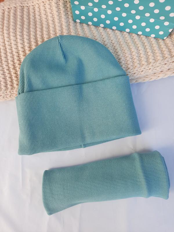 Чудовий набір шапка та хомут. Подвійний комплект із м'якого трикотажу в рубчик на дітей та дорослих Склад: 97%-бавовна, 3%-еластан. Не пропустіть вигідні