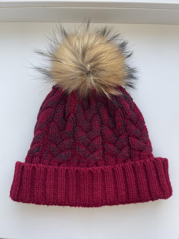 Шапка червона з помпоном, в’язана
