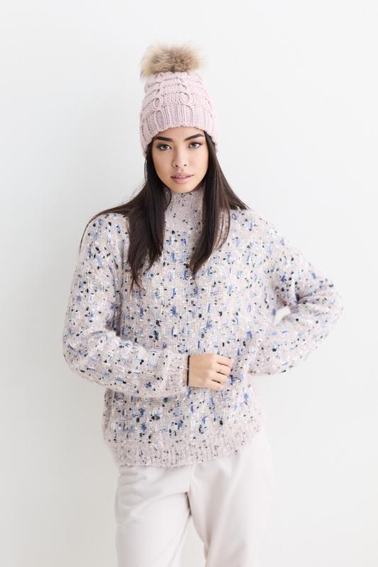 Вязаная шапка с помпоном из натурального меха Модель: 3113-1.4929 Сезон: весна, демисезон, осень Материал: вязка Цвет: пудровый Декоративные элементы: помпон из натурального меха Комплектация: шапка Уход: ручная стирка до 30°