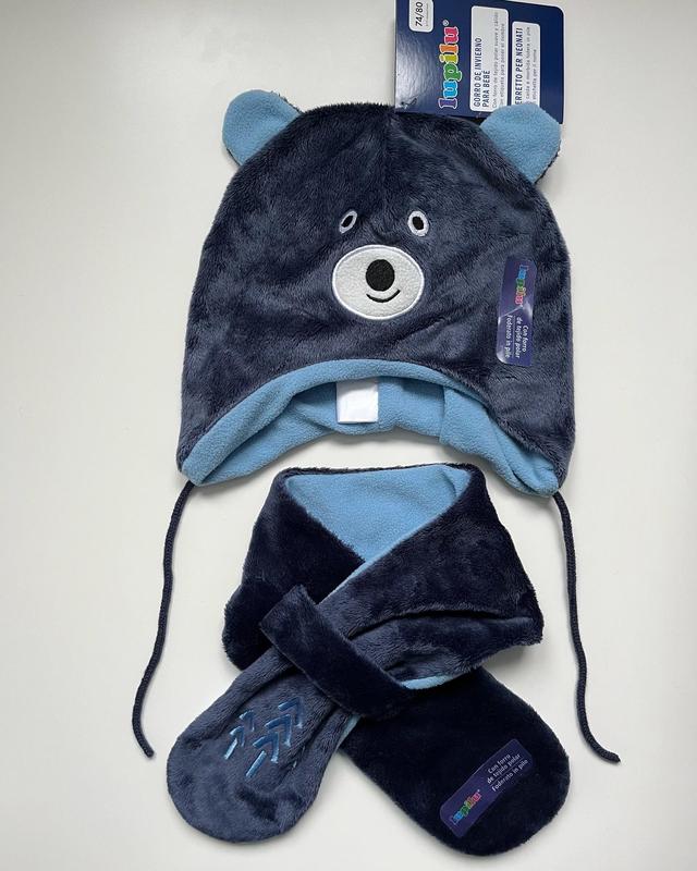 Набір шапочка + шарф від фірми Lupilu. Утеплені флісом (демісезон). Синього кольору, чудової якості. (Наліпка lupilu знімається ) Розмір 74-80 (6-12 місяців)є три набори Є безпечна оплата, відправка укр і новою поштою