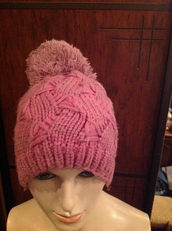 Вязанная шапка с помпоном, р. 57-60 Состав не помню, скорее всего шерсть с добавками, по канту внутри вплетены тонкие резинки. Цвет: светло бордовый, помпон бордово сиреневатый.