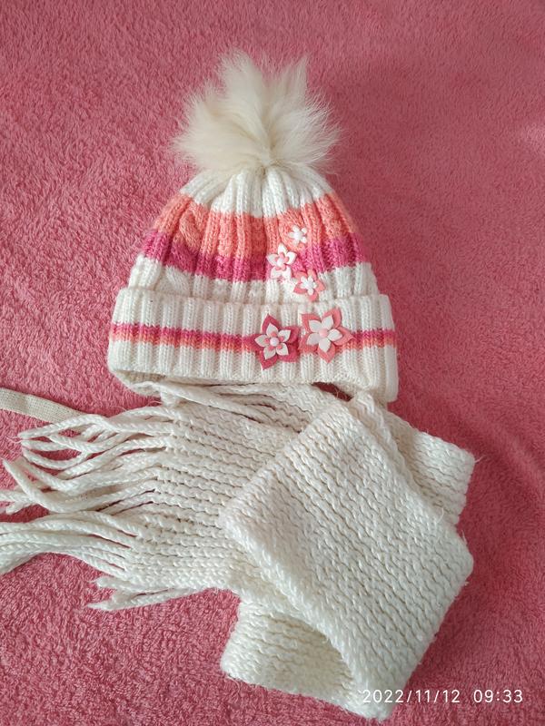 шапка+ шарф для дівчинки на вік ,5-8 років шапка на флісі ,бубон з натурального хутра, довжина шарфа 150 см, в дуже гарному стані