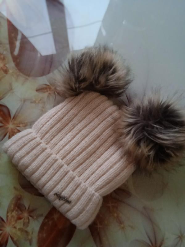 Шапка на дівчинку.Тепла ,мягенька і якісна.З помпонами.Підійде на 6-9 років.