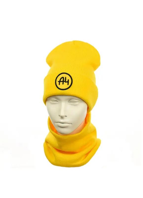 Двошаровий в'язаний комплект Шапка і Снуд для хлопчика 6 -12 років. Пов'язаний з напіввовняної пряжі. Шапка-лопата з відворотом, добре тягнеться. має видовжену форму. Відворот шапки прикрашає модна об'ємна вишивка. Розмір 54-56. шерсть - 50%, акрил - 50%