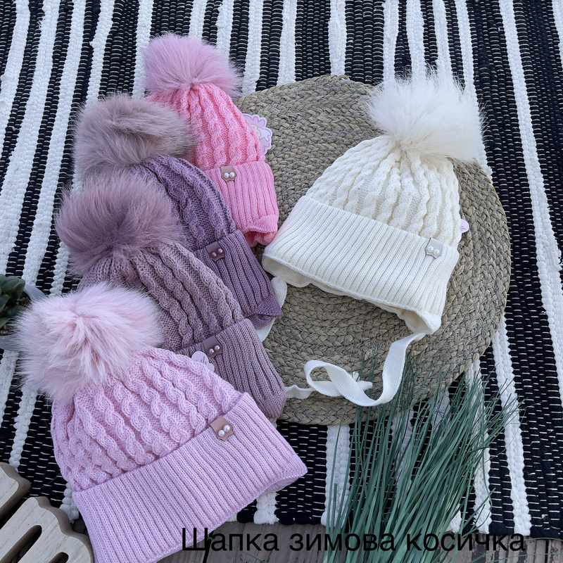 Зимова шапка з натуральним бубоном виробництва Україна! Якість люкс! Прикрашена емблемою. Утеплена флісом. Дуже тепла. На завязках. Розмір: 52-52 -візуально 1-3 роки