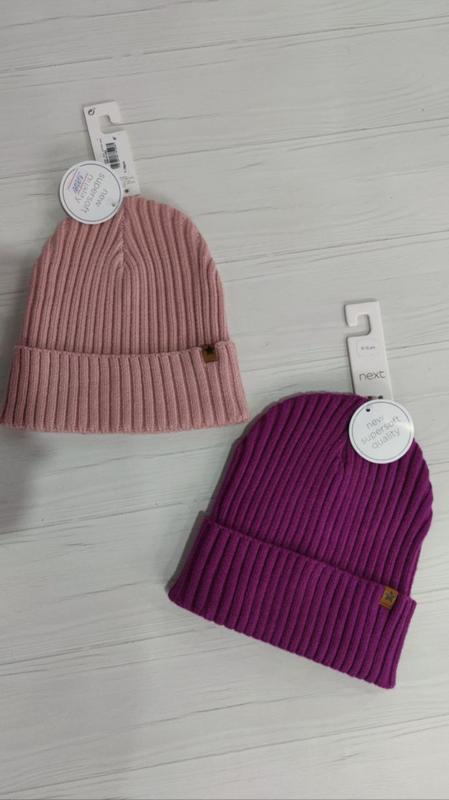 В наявності нові шапки в рубчик NEXT , дуже мякі та приємні на дотик, не тугі зовсім Теплі, на холодну осніь/єврозиму 50% Viscose, 30% Polyester, 20% Nylon. Пудрова є у розм. 7-10 р. Ціна - 390 грн. висота - 18,5, шир. - 19 Рожево-фіолетова у розм. 11-13 р. Ціна - 440 грн. висота - 19,5. шир. - 18 Дуже маломірять, тому орієнтуйтесь на заміри