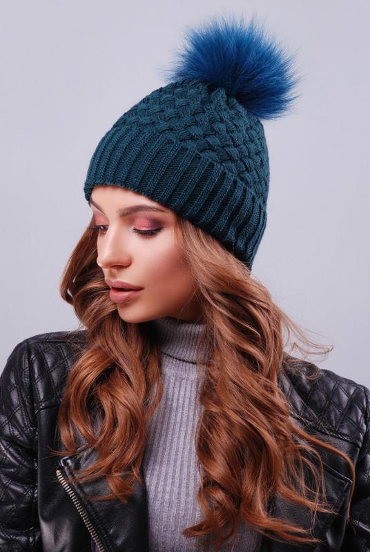 Стильна жіноча шапка з відворотом, виготовлена з м'якої пряжі з пишним пампоном з натурального хутра песця, пофарбованого в колір шапки. Подвійне в'язання до середини виробу. Матеріал: 50% вовна, 50% акрил Продукція йде у одному універсальному розмірі 55-57. Є зовнішній манжет заввишки 7 див. Кольори в наявності: кава, св.джинс, т.зелений Відповідно до Закону «Про захист прав споживачів» не передбачено повернення та обмін даного товару належної якості.