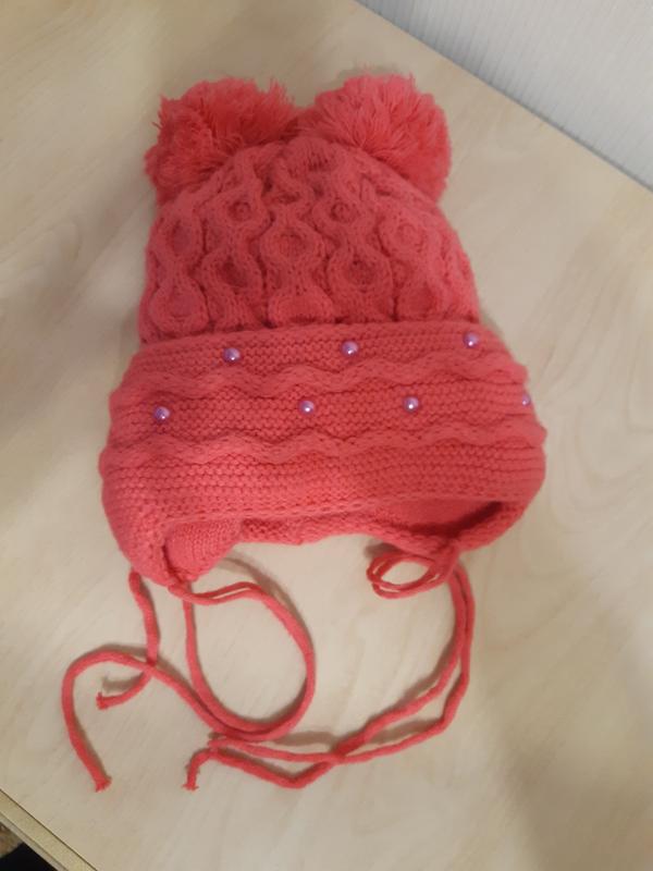 Тепла зимова шапка на зав'язках, для дівчинки