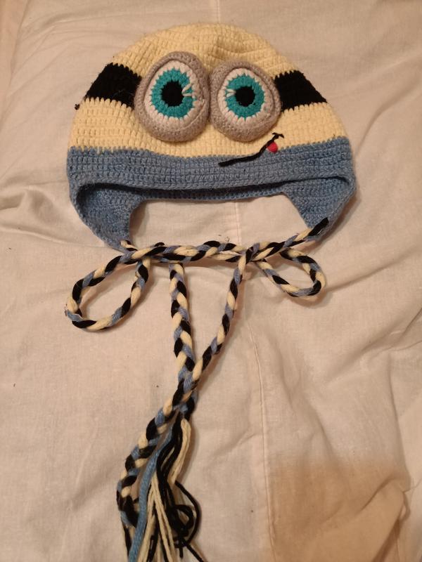 Тепла зимова шапочка ручної роботи у вигляді мінйона на 3 - 4 роки. З середини фліс.
