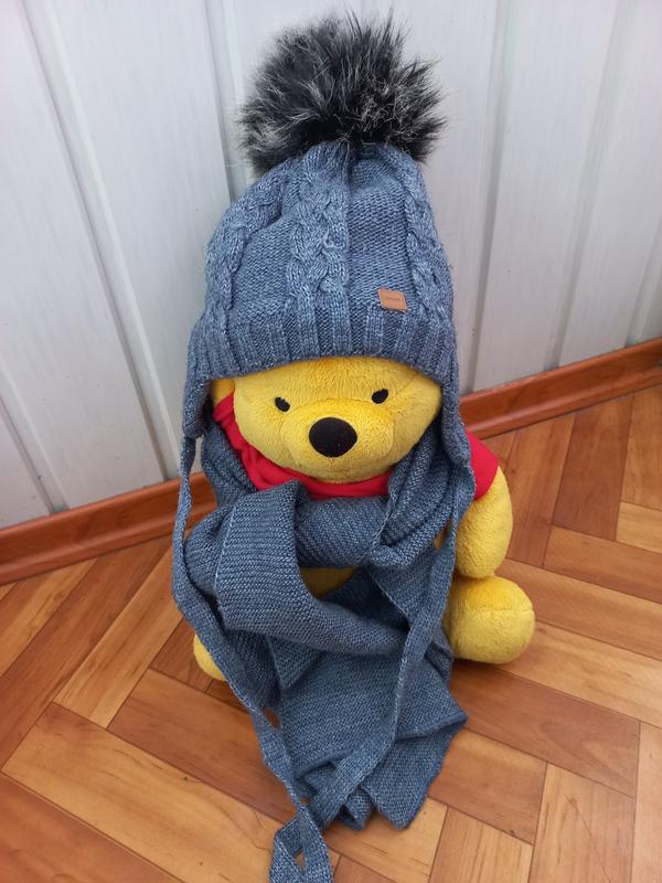 Теплая шапка на флисе, помпон не натуральный. Нюансов нет.т