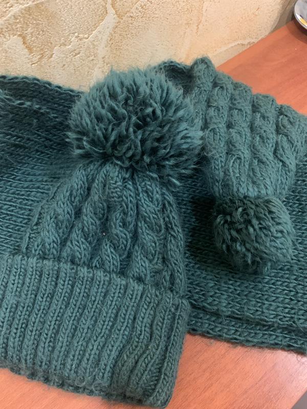 Шапка с шарфом (около 2-х метров) бутылочного цвета в красивом состоянии