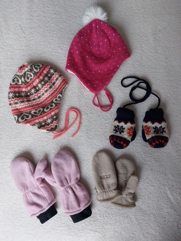 Детские зимние шапки и варежки для девочки 1-1.5года