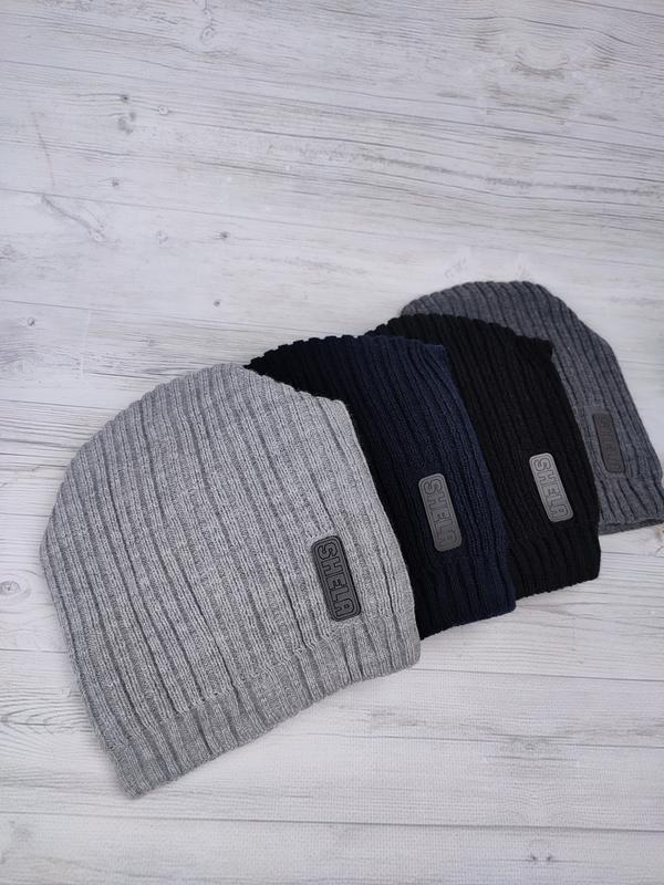 Шапка дитяча з флісовим утепленням 🔹шапки shela для хлопчиків - в'язана - утеплена