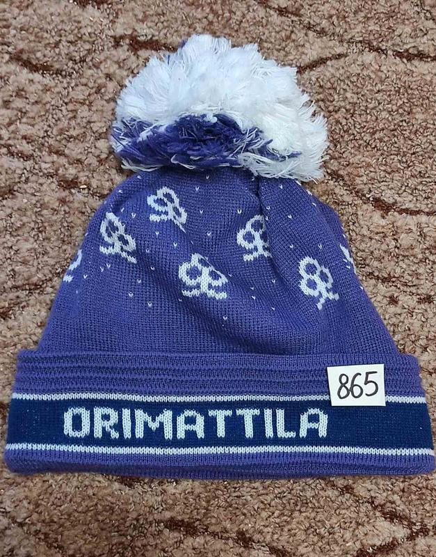 Замеры : окружность 50-62 - высота 20+7 отворот. Состояние идеальное. Теплая шапка из плотного акрилового трикотажа сиреневого цвета с белым орнаментом. Подкладка - плотный акриловый трикотаж молочного цвета.