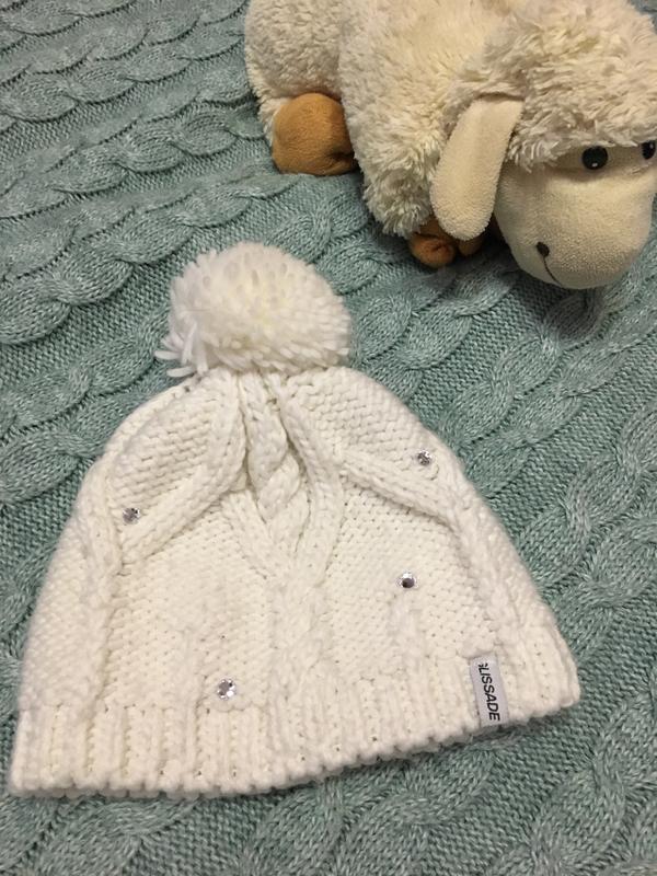 Женская зимняя шапка, внутри на флисе,, спереди украшена камушками, очень оригинальная и теплая на ОГ 54-55 см