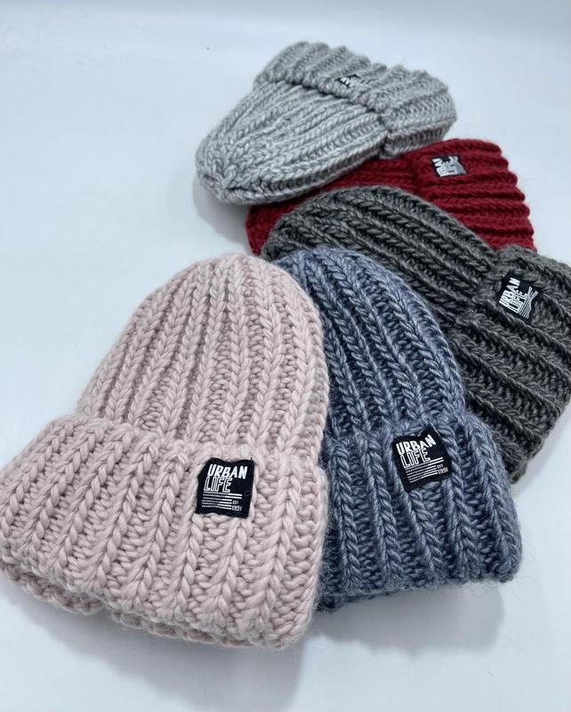 Шапка девушкам вязаная на флисовой подкладке на зиму 52/56