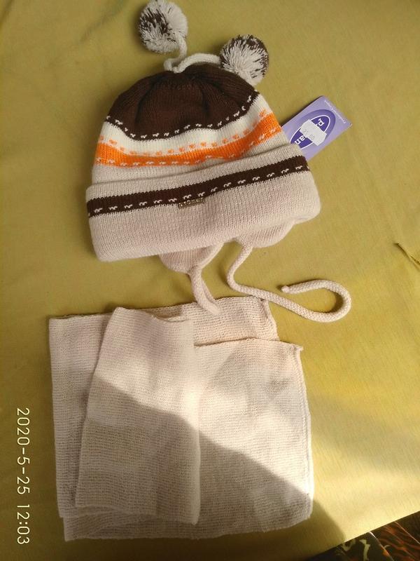Новый комплек с биркой. 2-4:роки Замеры Шарф Длина -91 Ширина-16 Шапка Высота-19 Манжет высота 7 см Обхват круг шапочка 48 см.без натяжки
