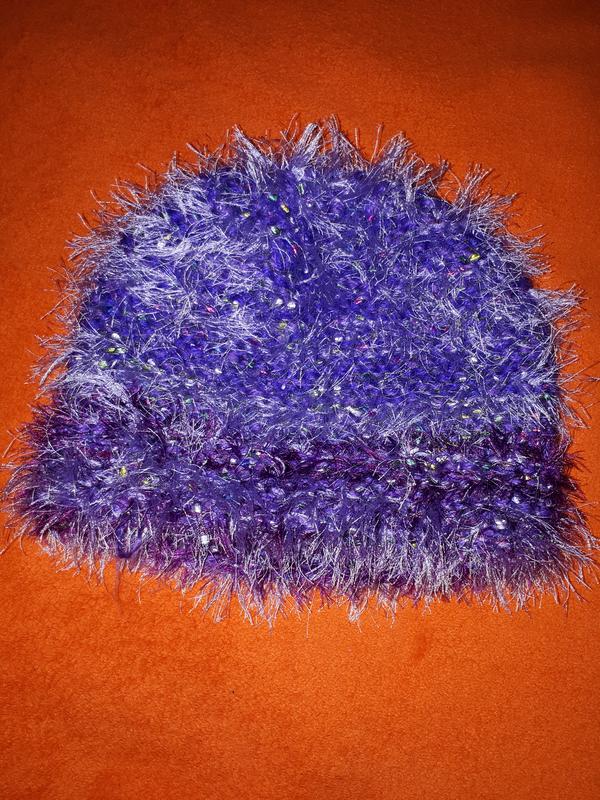 Модна об'ємна цікава кольорова шапка з ворсинками.