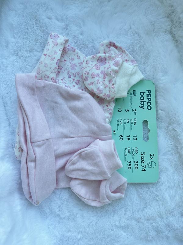 Двойной весна-лето набор для девочки Две шапочки и две пары перчаток Размер 74