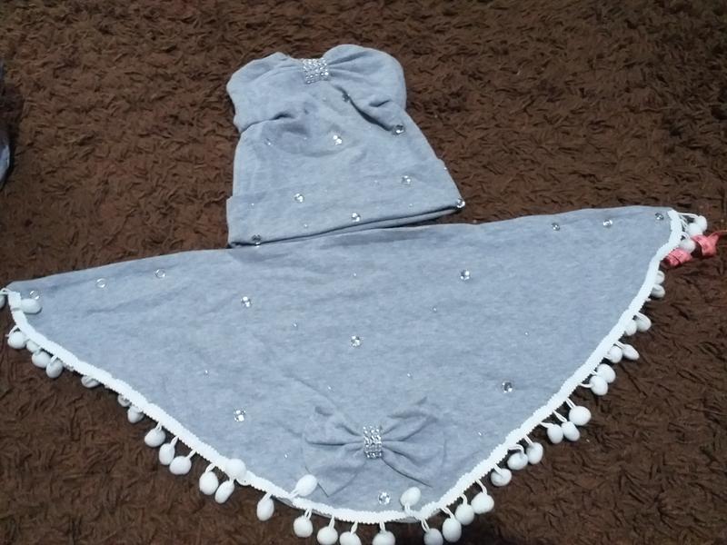 шапка с отворотом что удобно надевать на любую прическу, шарф-хестинка на кнопках. На 7-12 лет