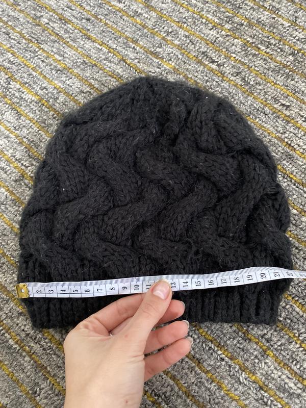 На ткани есть катышки. Без подкладки. Шапочка широкая-смотрите замеры