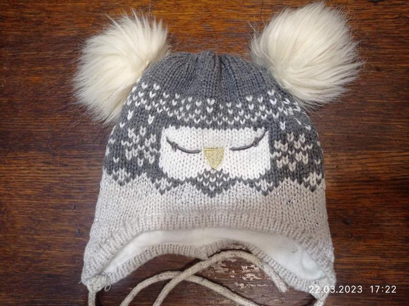 Минимальный заказ у продавца на 100 грн. Зимняя, тёплая, красивая шапочка с ушками (бумбончики) в очень хорошем состоянии на ребенка 1-2 года. Модель 1928