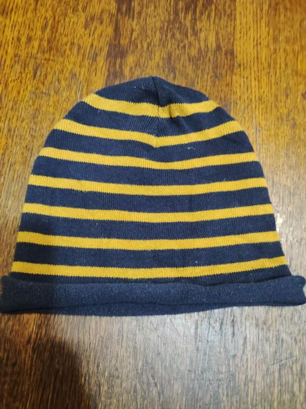 Минимальный заказ у продавца на 100 грн. Классная шапка темно-синего цвета в темно-желтую полоску в очень хорошем состоянии. Модель 2044