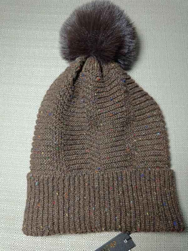 Коричневая шапка. шапка с помпоном. тонкая шапка. размер 22*22 см. новое. качество отлично. без нюансов