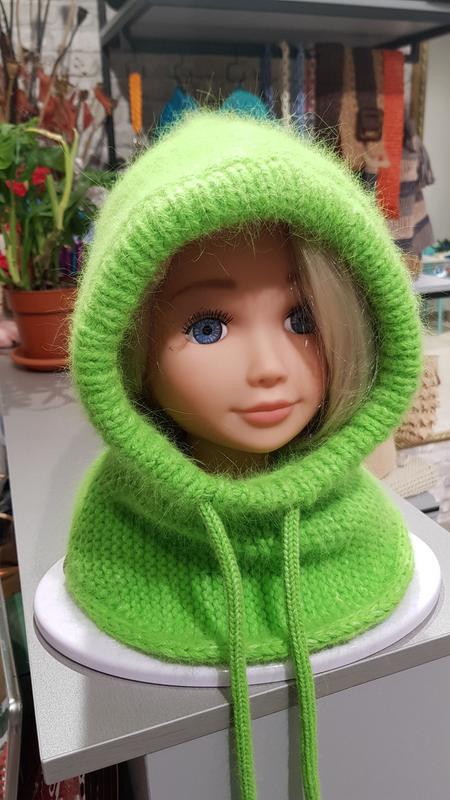 Холодно и нужно срочно утеплиться Капор-капюшон вам в этом поможет! Размер 23х32 охват головы 54-56см Он для тех, кто не очень любит Шапки. Стильный капор - капюшон гарантирует тепло и комфорт, а также понимание исключительности, так как это изделие мастера, ручная кропотливая работа. Можно носить и как шапку и при этом она закрывает шею, и как шарф, если снять ее как капюшон. Капор имеет ворсистую мягкую структуру. Свобода капора регулируется завязками. Красивый яркий салатовый цвет. В наличии есть вязаные салатовые варежки.