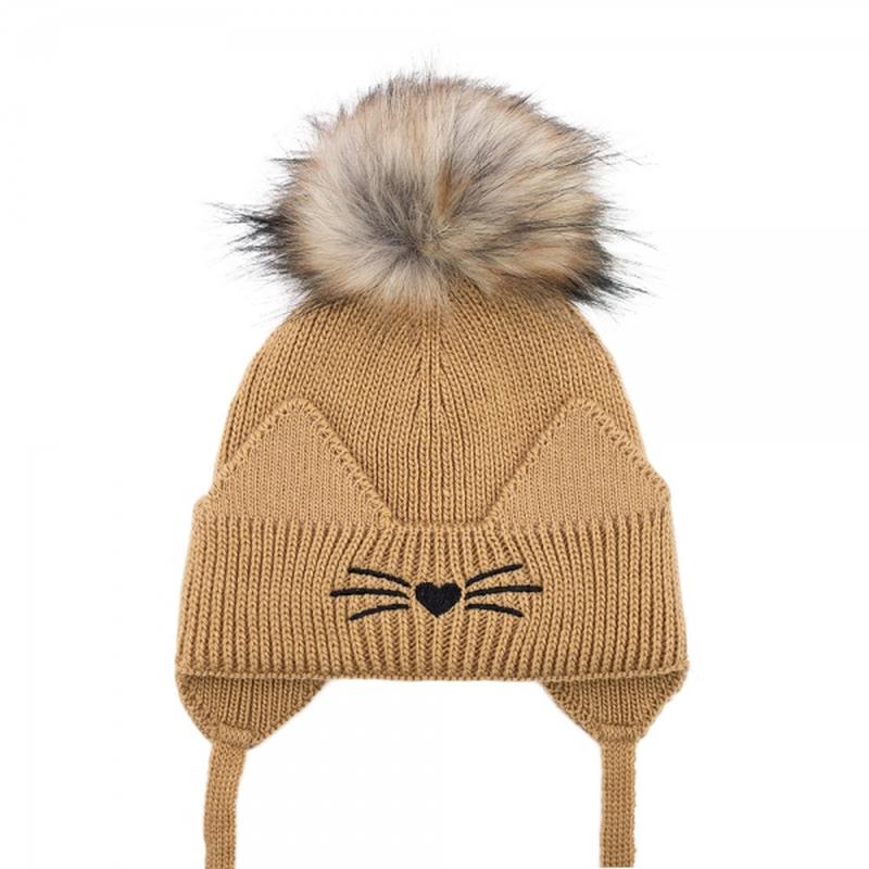 В'язаний зимова шапка Діана для дівчинки. ✔️Верх виробу виготовлений із напіввовняної пряжі. ✔️Зав'язки добре фіксують шапочку на голові, а відворот додатково зігріває. ✔️Усередині флісова підкладка. ✔️Окрасою служить помпон із штучного хутра, вишивка та милі в'язані вушка на відвороті. Склад: 50% вовна, 50% акрил. Утеплювач - фліс. Розміри: 44-48 50-54 Наявність розміру уточняйте.