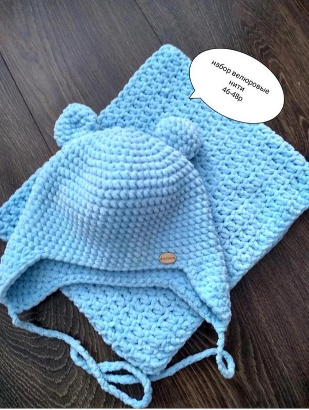 шапка и снузд из велюровых нитей.на ребенка от 1рочку до 2.5 лет.заказывают под заказ ручная работа.без диффектов.