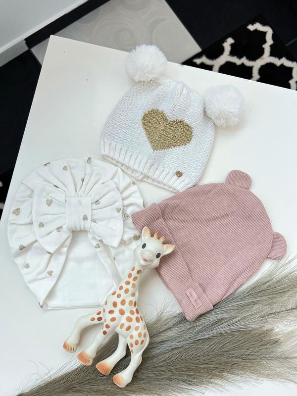 Красивые шапочки🌸 📌белая с бумбончиками 0-6м 📌розовая от фирмы Zara 6-12м 📌белая с бантиком 0-3м 💸99(за одну97)