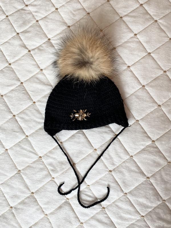 Шапка ручная работа внутри на флисе , помпон натуральный состояние отличное