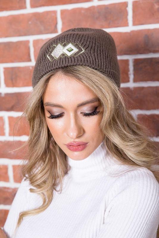 Жіноча шапка кольору хакі з декором 167r7788