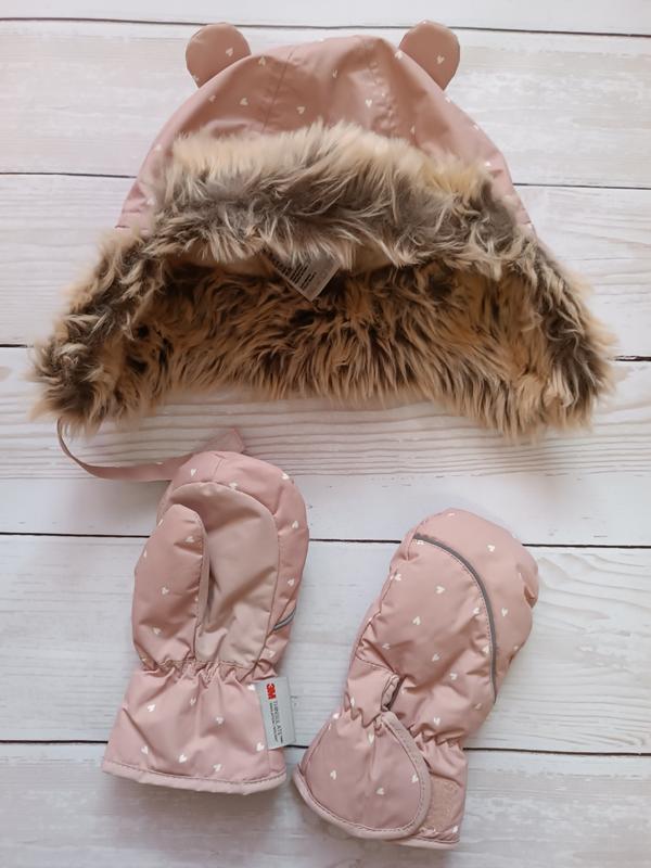Теплая шапка и краги на флисе, водонепроницаемые, подходят к холодной зиме.