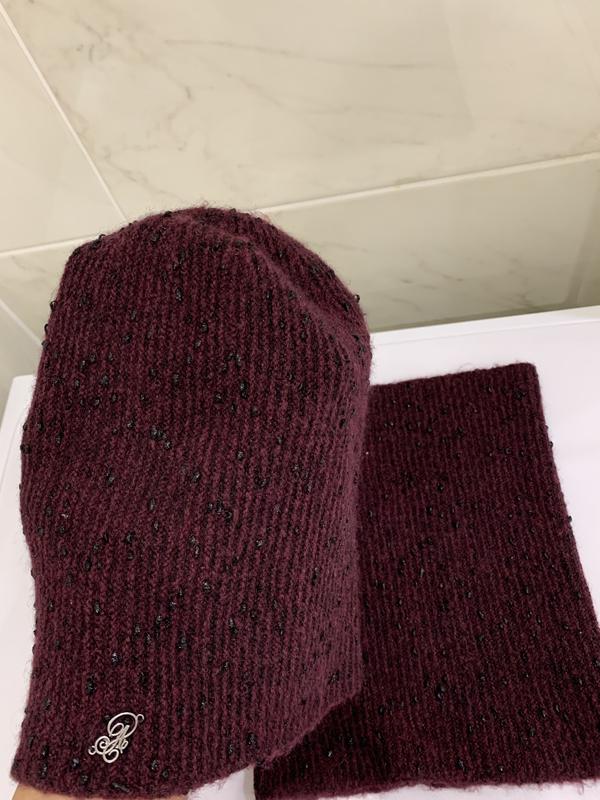 Шапка і снуд(на горло, наче шарф). Новий набір. Не разу не вдягався! Марка Atrics. Колір дуже гарний.(наче темно вишневий). Склад:вовна, шерсть, віскоза.