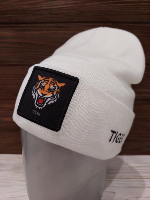 Шапка женская белая, мужская шапка на мальчика белая мульт шапка тигр, шапка лопата мультф...