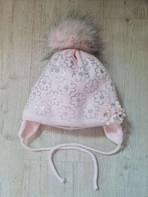 Теплая шапочка на флисе, есть "ушка" которые прикрывают ушки ребенка. Размер 46/48 по этикетке.