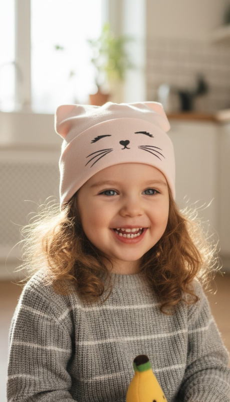 Шапка детская "Котик" Сезонность: Демисезонность Материал: Трикотаж Состав: Котон Цвет: бледно розовый