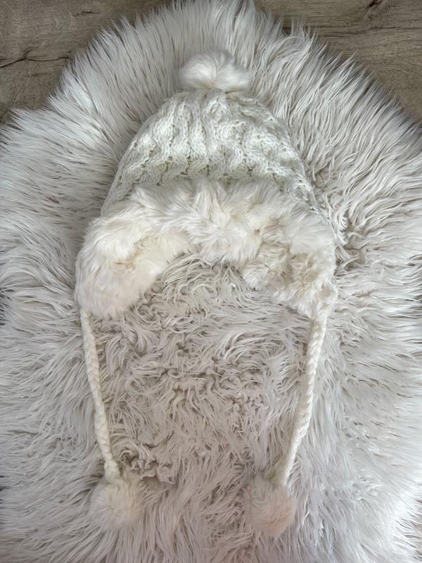 Белая шапка с завязками и бубоном 1+1=3
