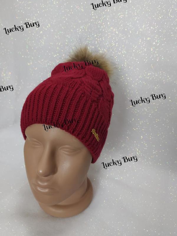 601576 Женская шапка бордо 70% wool З бубоном Флис "повязкой" 1 шт
