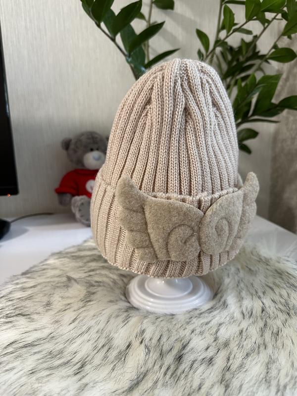 Шапка вязаная на флисе с крыльями, которые можно носить как спереди, так и сзади. Размер: 50-52 ( 3-7 лет)