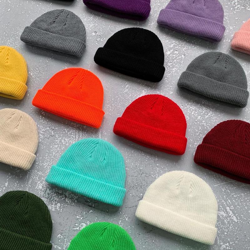 Шапка бини докер мини бини докерка укороченная выше ушей вязаная короткая с подворотом отв...