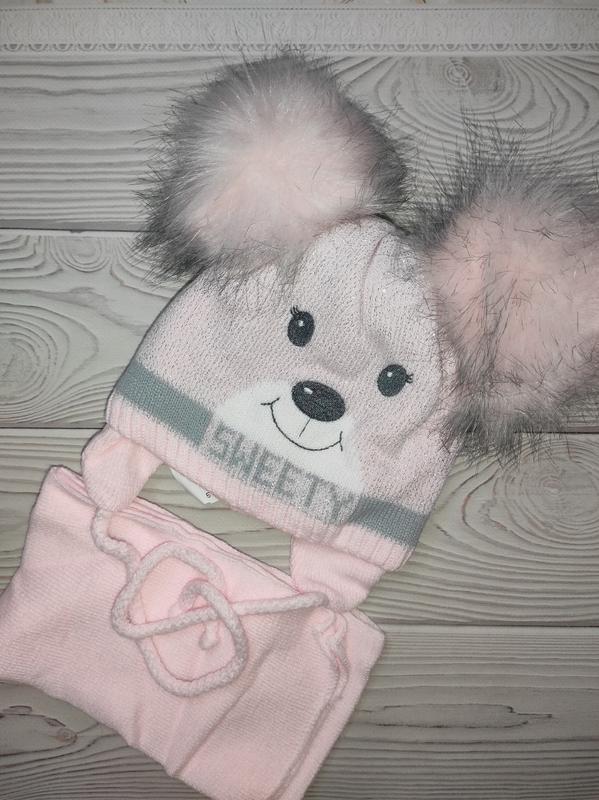 Grans Польша Зима Шапка + шарф Верх вязка 100 акрил подкладка флисовый 100 хлопок. Бомбон искусственный Полномерные, размер 40-42, 0-5мес примерно. Ориентируйтесь по объему головы Вашего ребенка