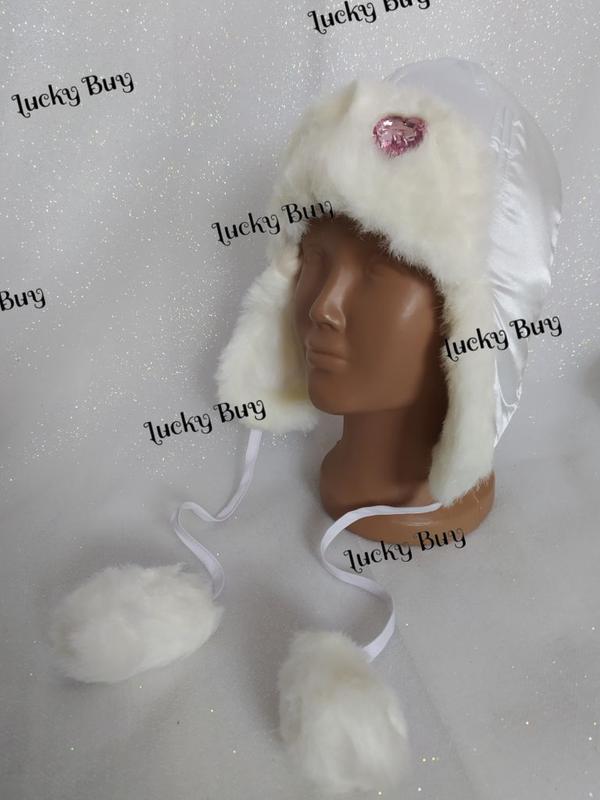 630645 Белая зимняя шапка с розовым сердечком Для девочек На завязке Размер 50,52,54 260 грн
